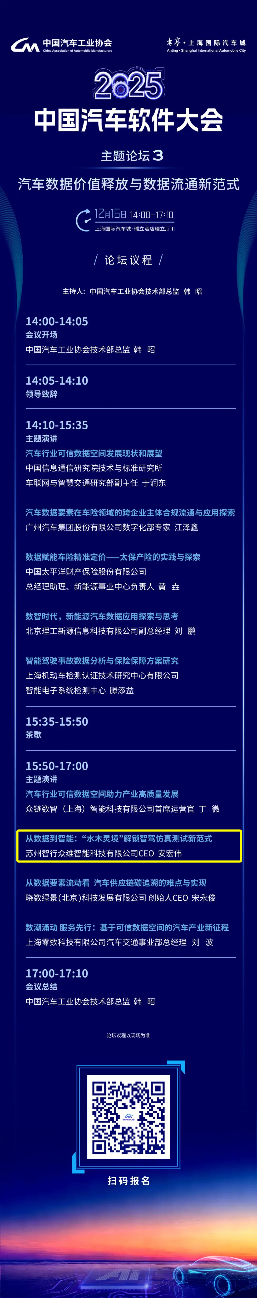 2025年11月26日-29日,2025年上海国际汽车零配件、维修检测诊断设备及服务用品展览会(Automechanika Shanghai)在国家会展中心(上海)成功举办,超450位行业领袖与专家、253,691名专业观众汇聚于此。作为智能网联及新能源汽车仿真测试领域的专业服务商,IAE智行众维通过两场主题演讲,阐释公司在智能驾驶技术迈向深水区的关键阶段,如何以前瞻的技术体系与AI增强的仿真测试工具链,为行业的安全、高效与规模化发展构筑坚实基座。